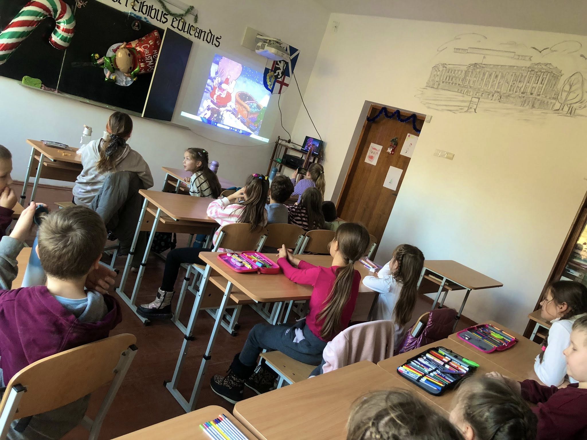 Під час заходу учні переглянули відеоматеріали англійською мовою, брали участь у пізнавальній грі Секретний код Санти», виконували різноманітні завдання, приховані у бороді Санти, а також вивчили пісню про сніговика